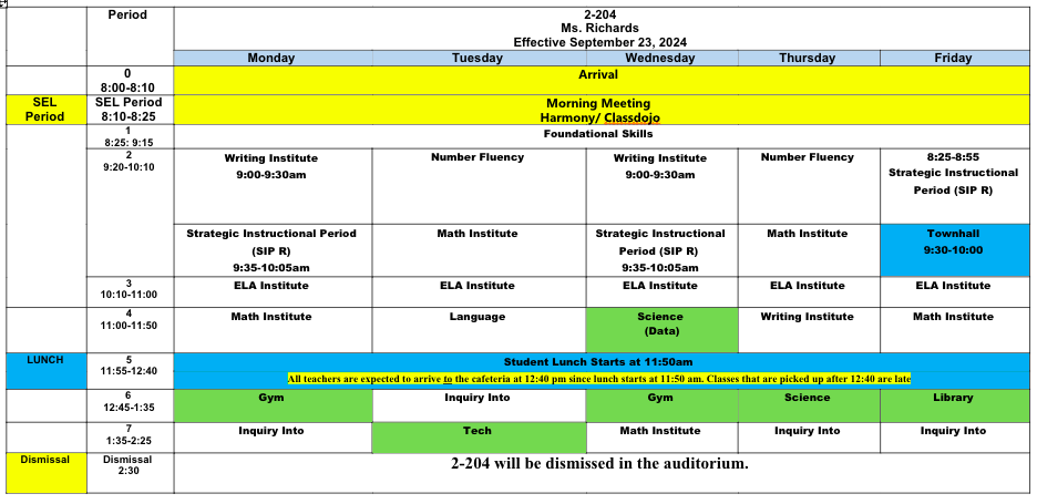Bell Schedule